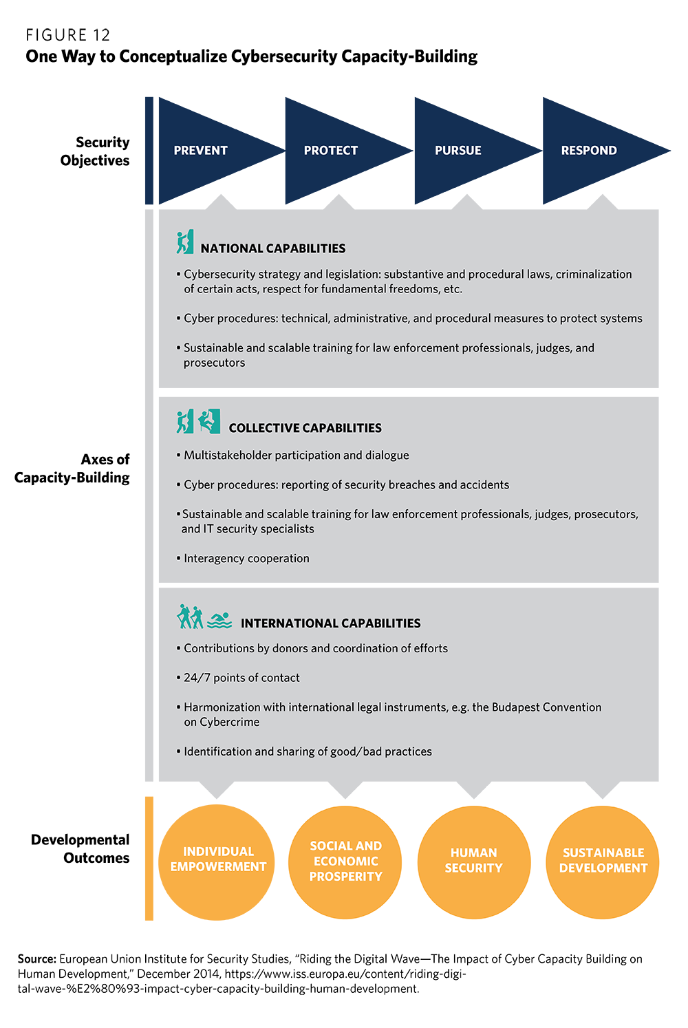 For this reason, the following recommendations focus on the still nascent capacity-building efforts relating to operational cyber resilience and collective defense. Some of these recommendations also reinforce other, related ongoing capacity-building efforts to help tackle cyber crime and to strengthen international norms.